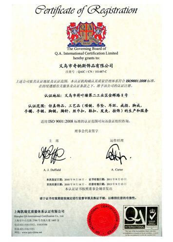 奇納斯有限公司認證